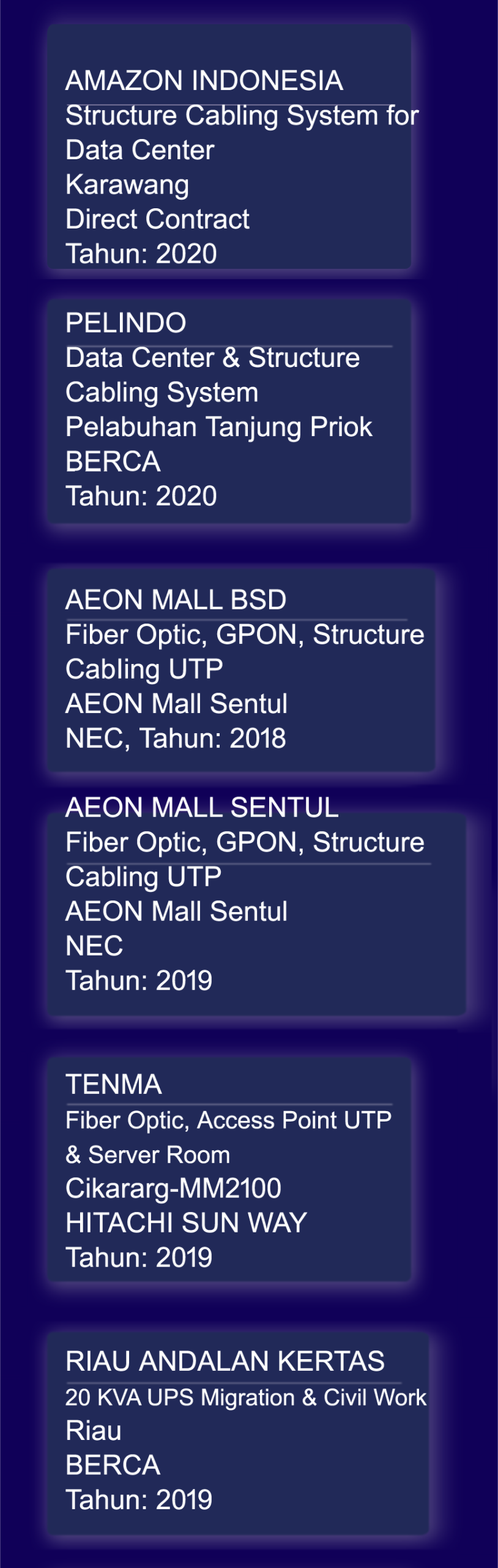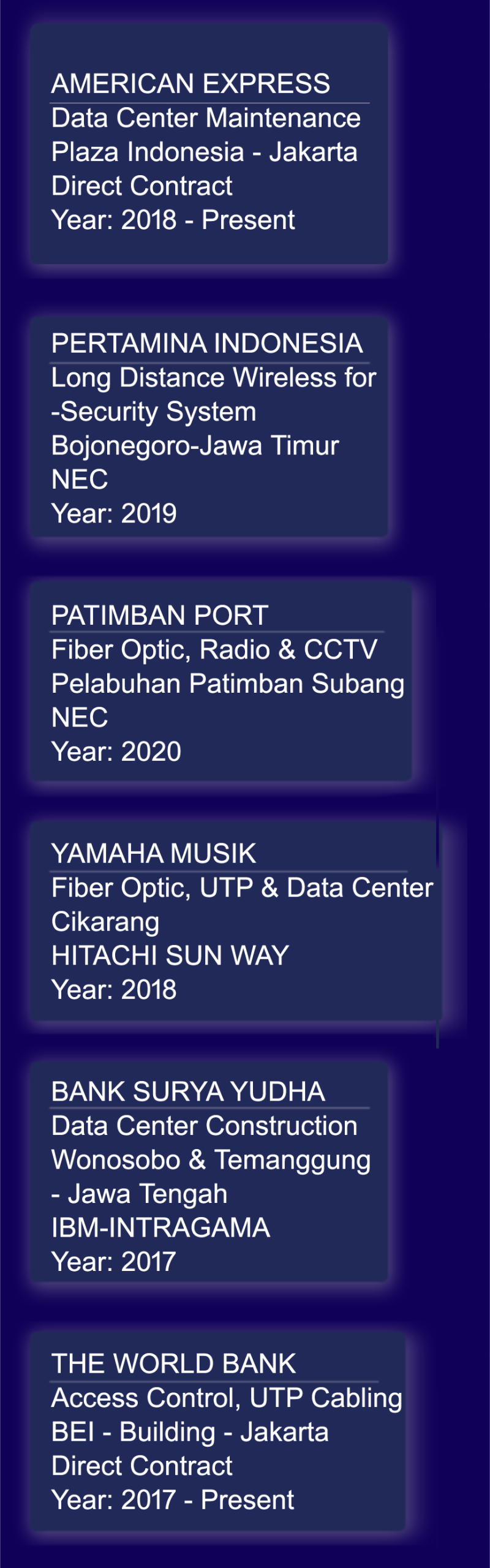 We have depth experiences in handling IT Infrastructure project at certain business area